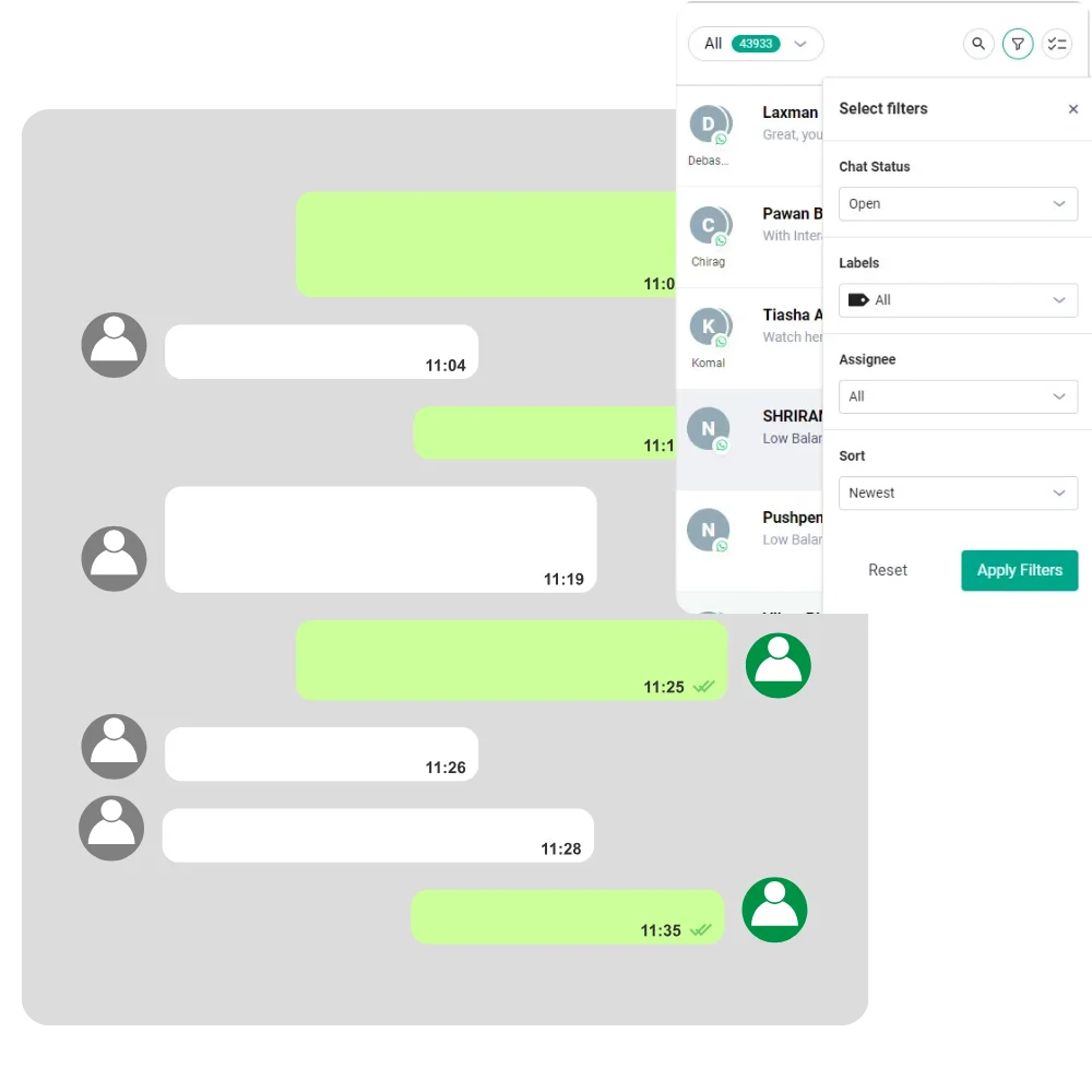 Benefit: No extra CRM needed — WhatsApp itself becomes your CRM with complete customer history, segmentation, and compliance built-in.